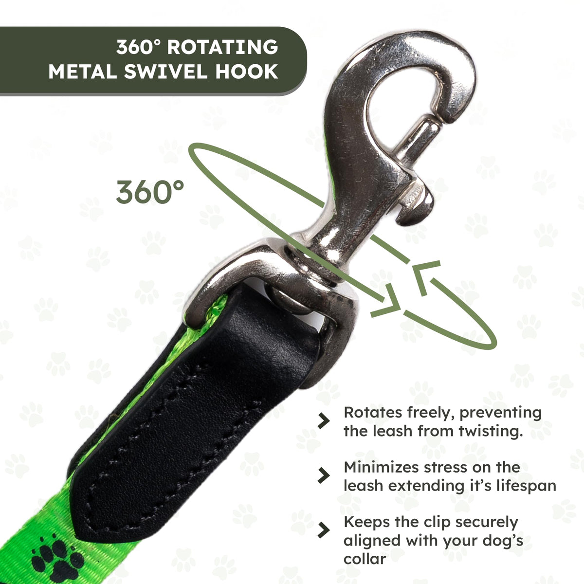 Adil’s Nylon Paw Print Dog Leash – 19mm Wide 5ft Long Durable Lead with 360° Swivel Hook Loop Handle Metal D-Ring Walking Training for Small Medium Pets