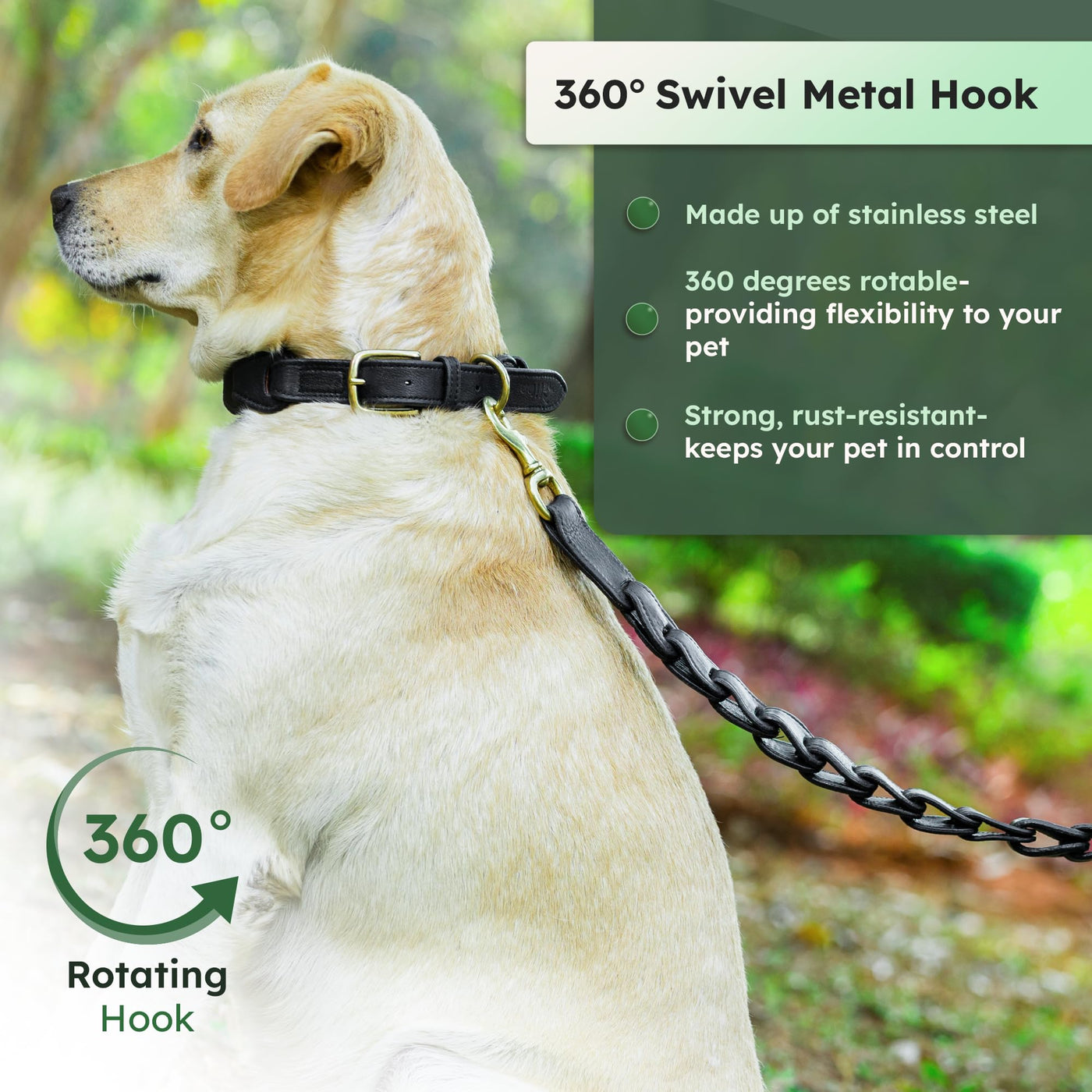 - STAINLESS STEEL HARDWARE WITH 360° SWIVEL HOOK: Equipped with a heavy-duty golden swivel hook that rotates 360 degrees, the leash prevents twisting and tangling during movement. The sturdy metallic D-ring adds convenience for attaching accessories such as waste bag holders or small pet items.