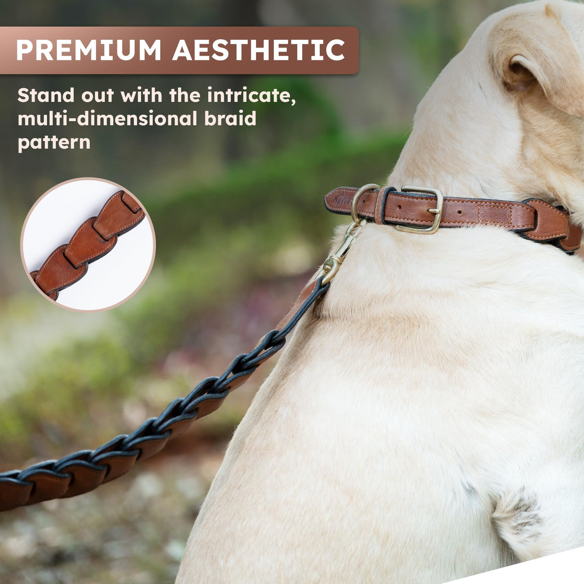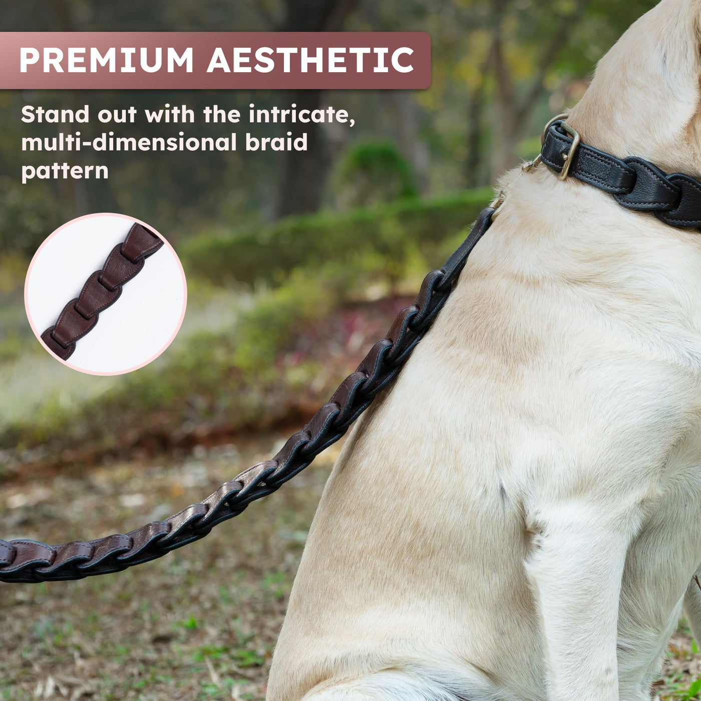 - BRAIDED LOOP DESIGN: The unique loop-style braided leather structure not only enhances the leash’s visual appeal but also strengthens its overall build. This design distributes tension more evenly, making it reliable for controlling dogs during energetic walks or training.