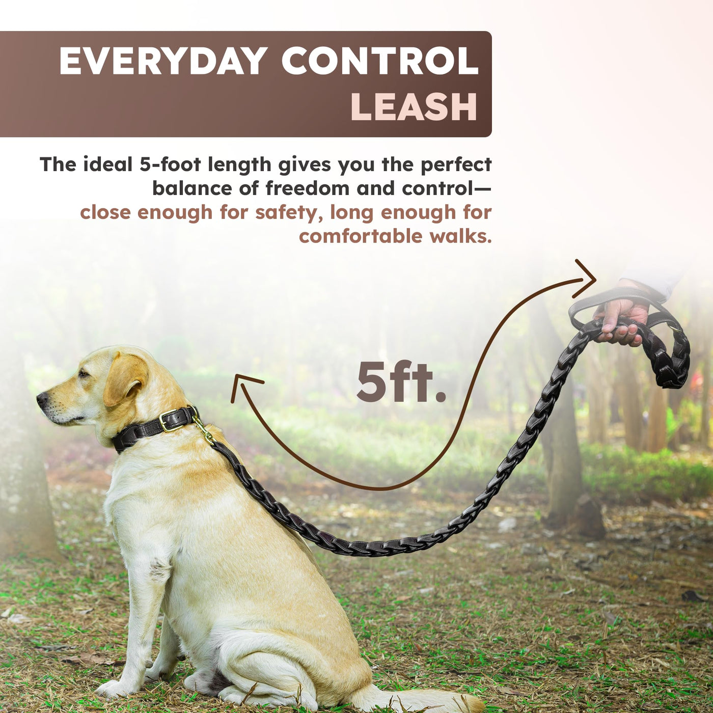 - IDEAL SIZE WITH MULTIPLE COLOR OPTIONS: Designed with a 1-inch wide strap and 5-foot length, this leash offers the perfect balance between durability and comfortable handling. It is available in stylish color variants including Red, black, brown, chestnut, and cognac, allowing you to choose the option that best complements your dog’s style.