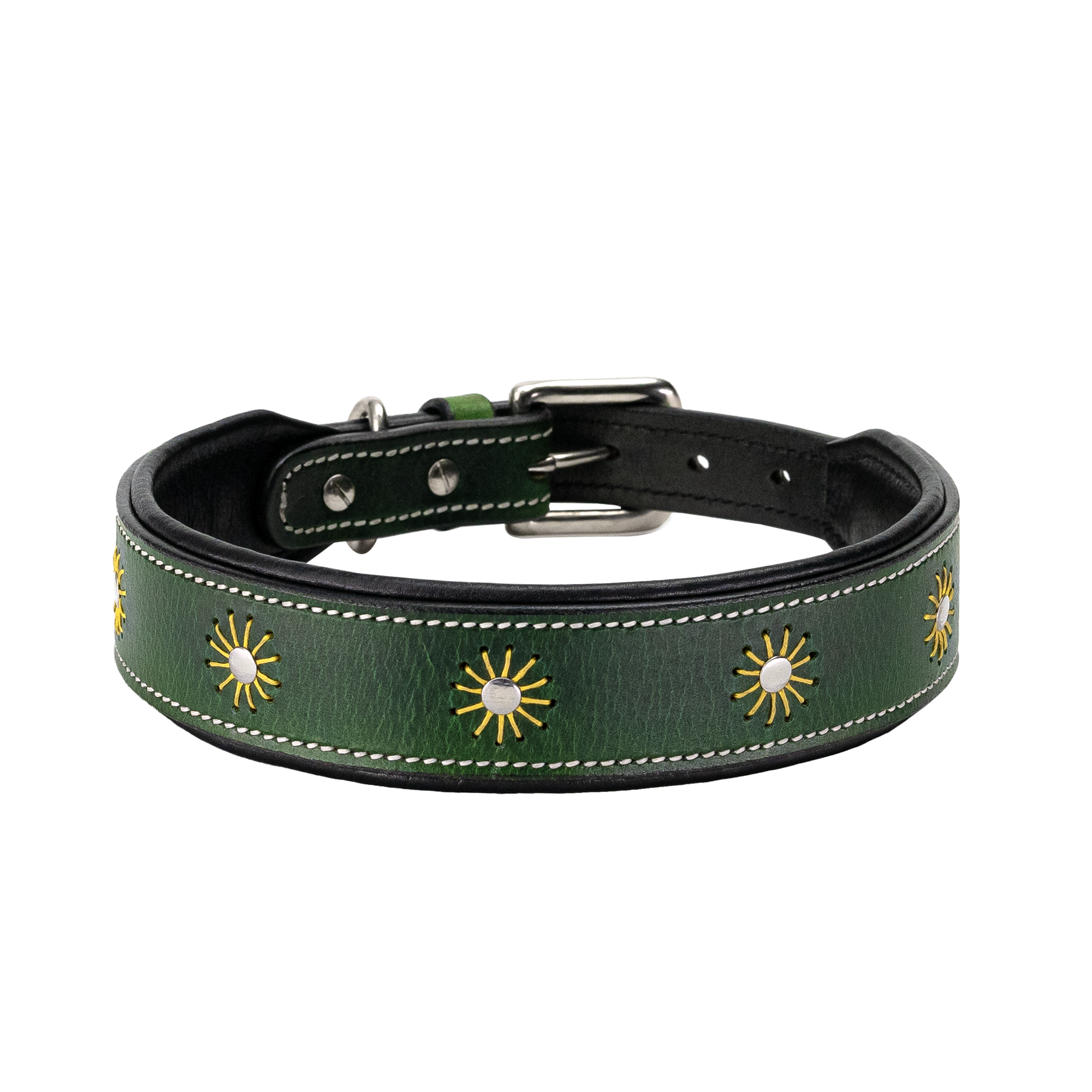 Adil’S Leather Dog Collar Thread Flower Design 1.5 width Adjustable Collars for Small Medium & Large Dogs, Made up Genuine Leather with Strong Metal Buckle - BROWN / Small