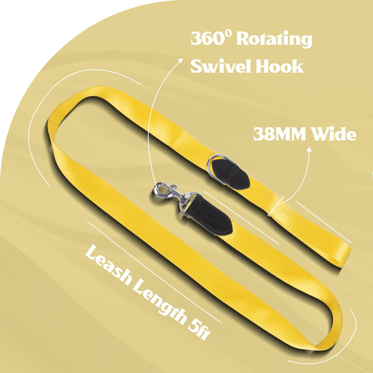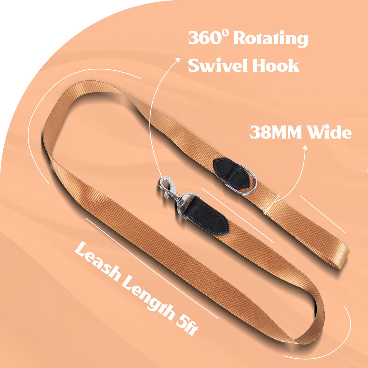 - 360° ROTATING METAL SWIVEL HOOK: Equipped with a strong chrome-plated swivel hook that rotates smoothly to prevent leash twisting or tangling. The secure metal clip ensures reliable attachment to collars and harnesses for safe and controlled walking.