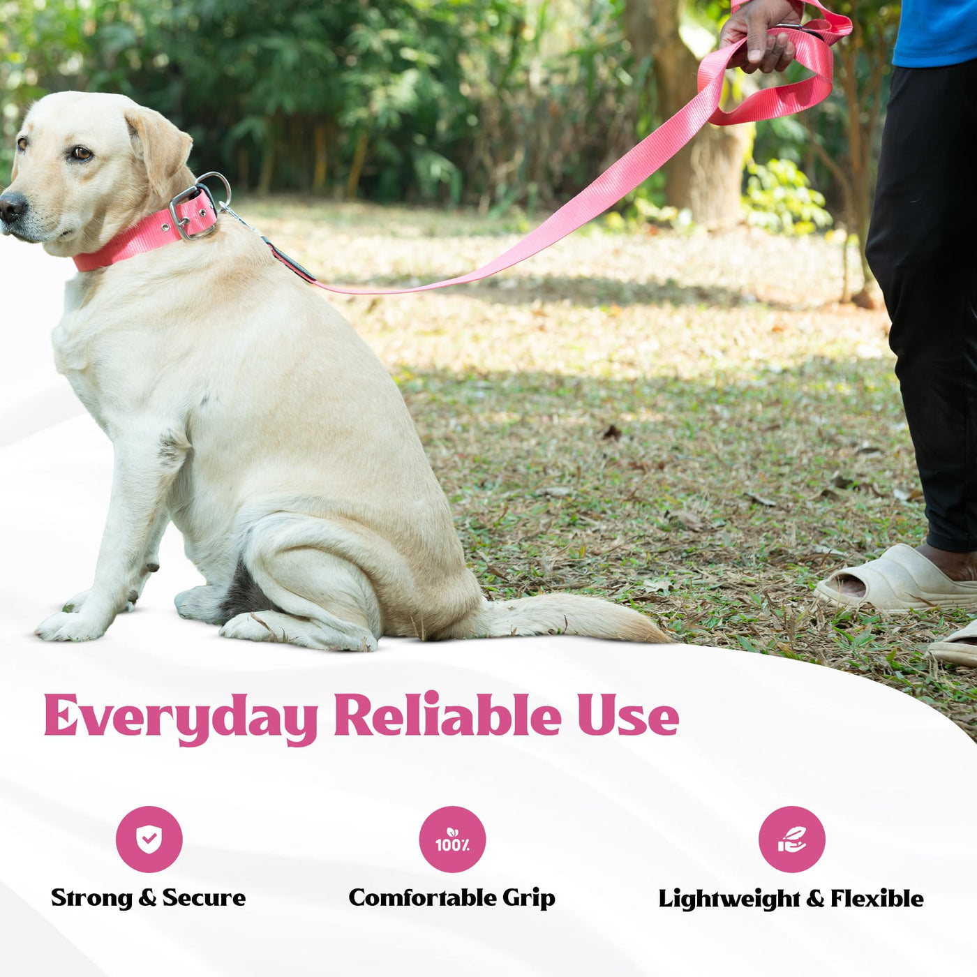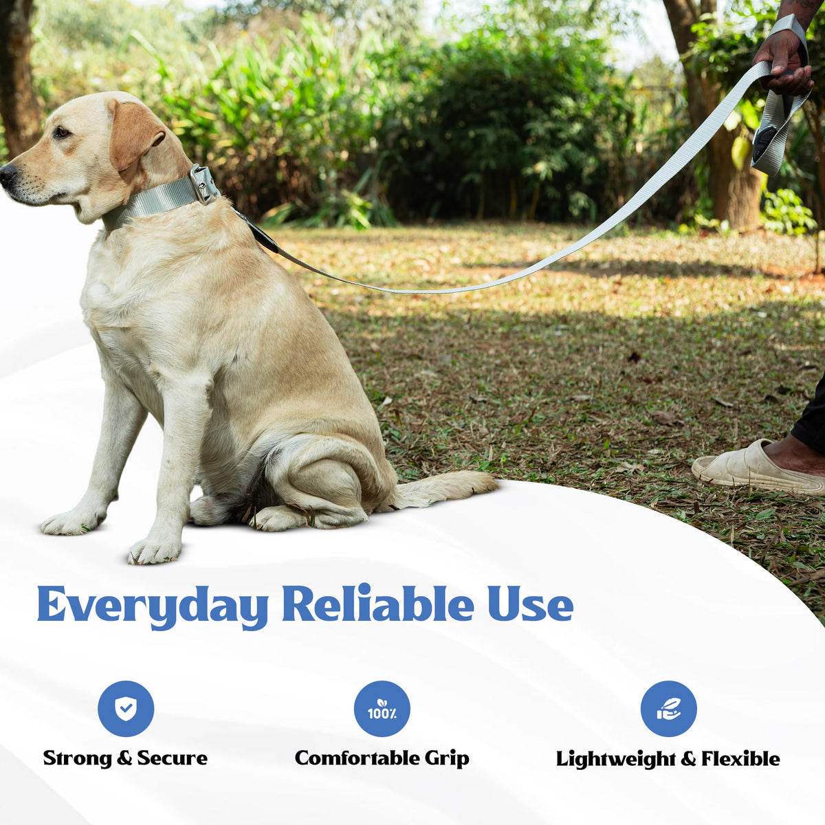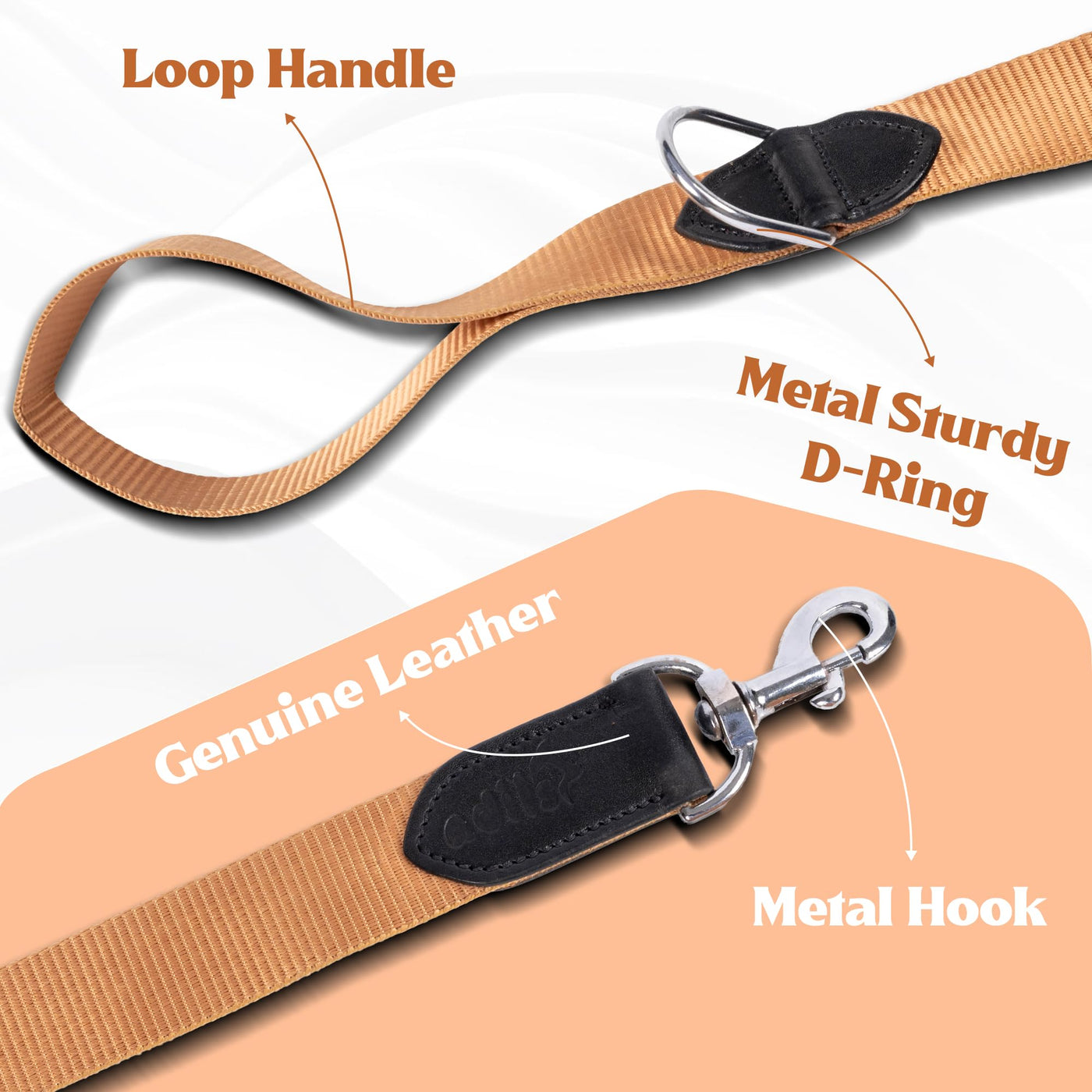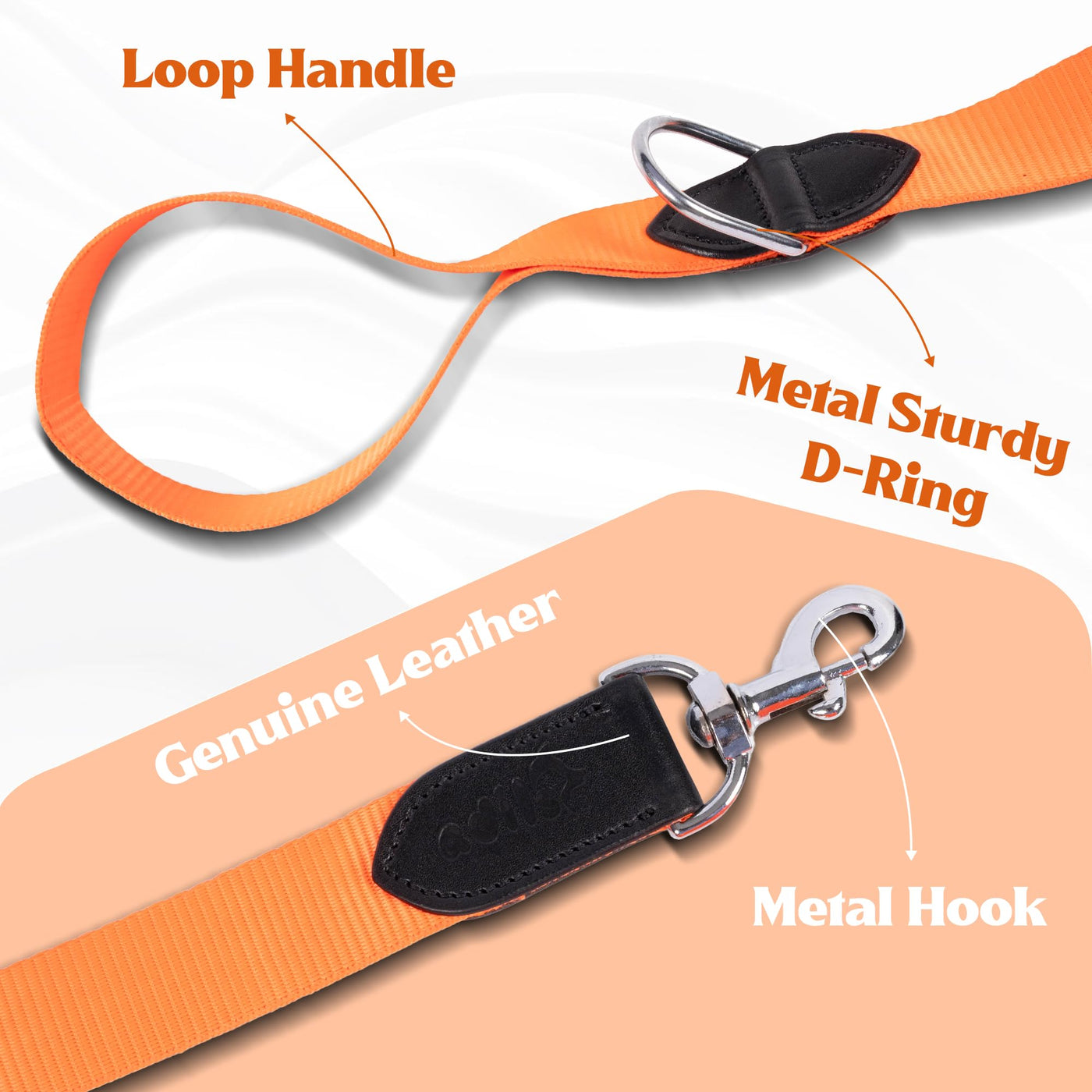 - COMFORTABLE LOOP HANDLE WITH STURDY D-RING: The reinforced loop handle provides a firm and comfortable grip during walks. A sturdy metal D-ring near the handle allows convenient attachment of poop bag holders, keys, or other accessories.