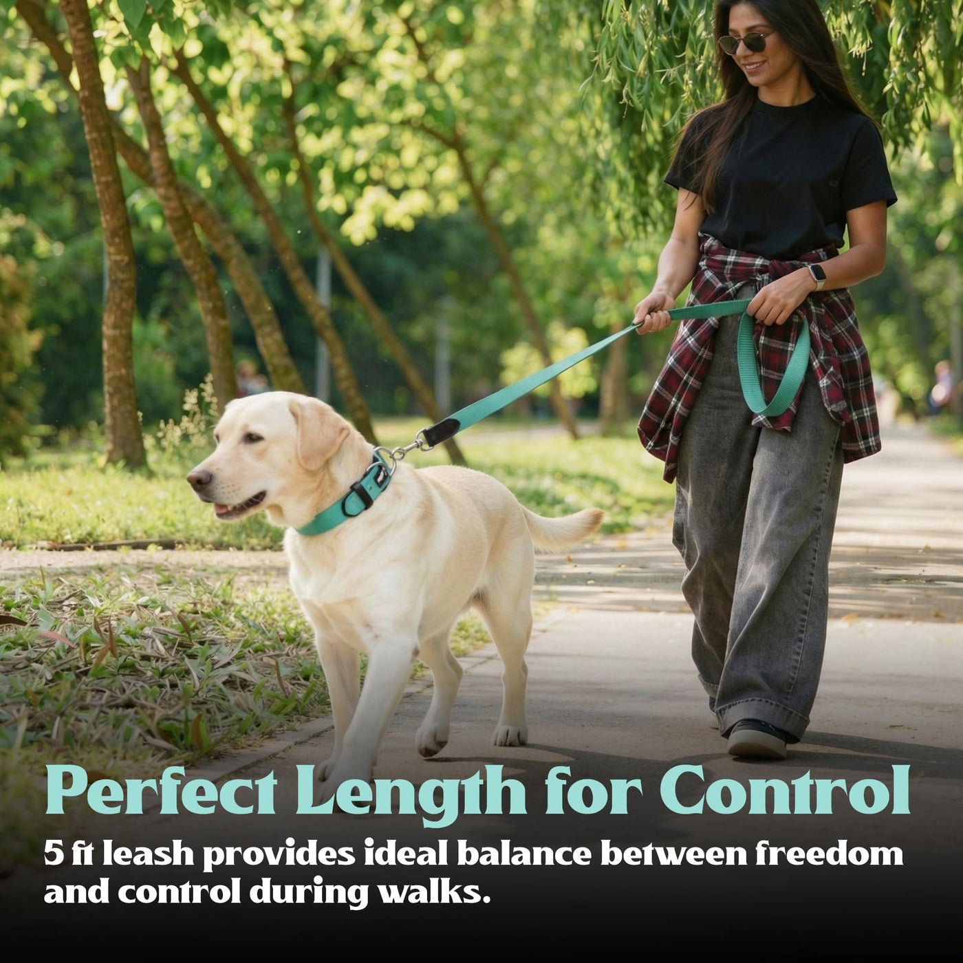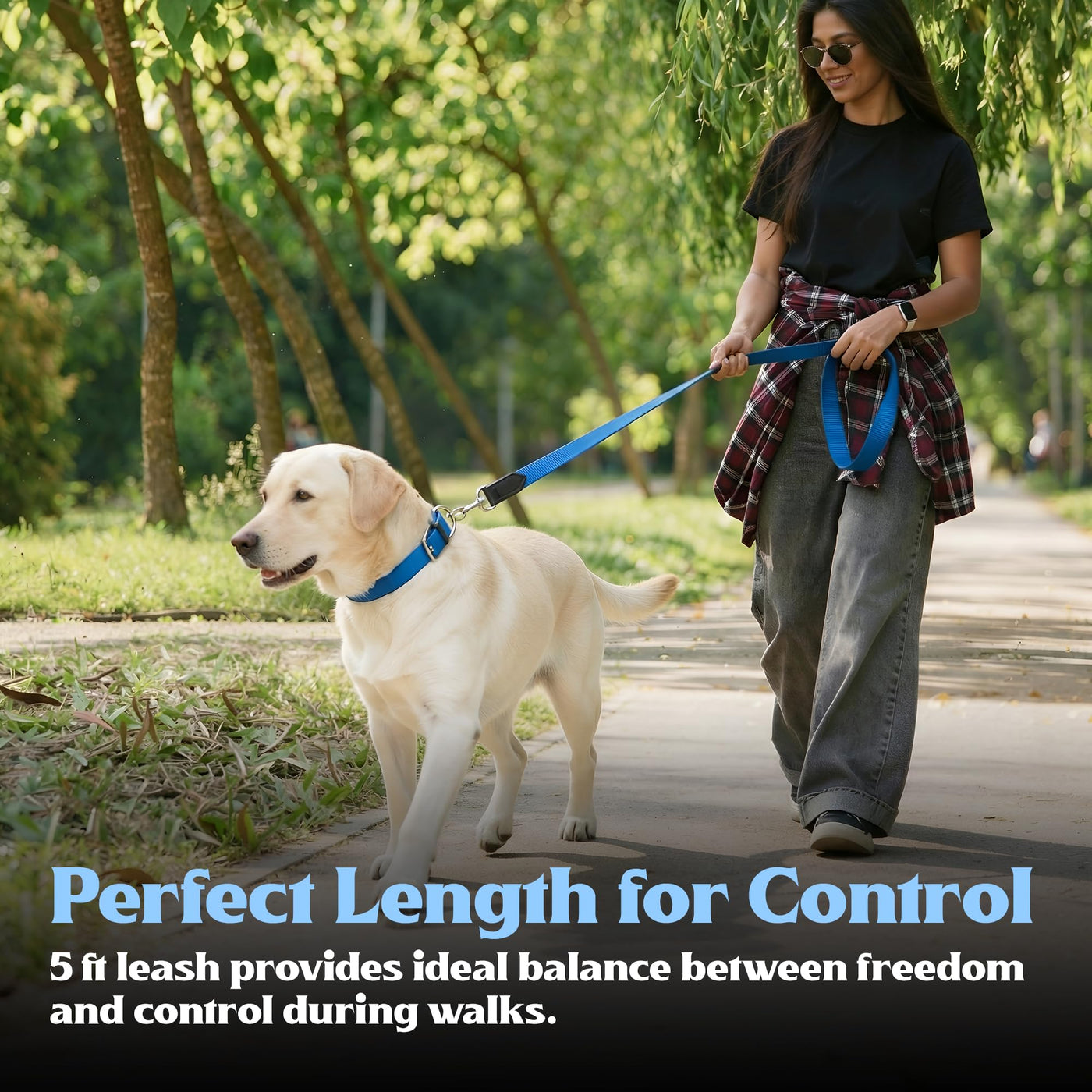 - OPTIMAL 5 FT LENGTH FOR CONTROL & FREEDOM: With a practical 5-foot leash length and 1.5-inch wide strap, it provides the ideal balance between freedom and control while walking, training, or exercising your dog, making it suitable for medium and large breeds.